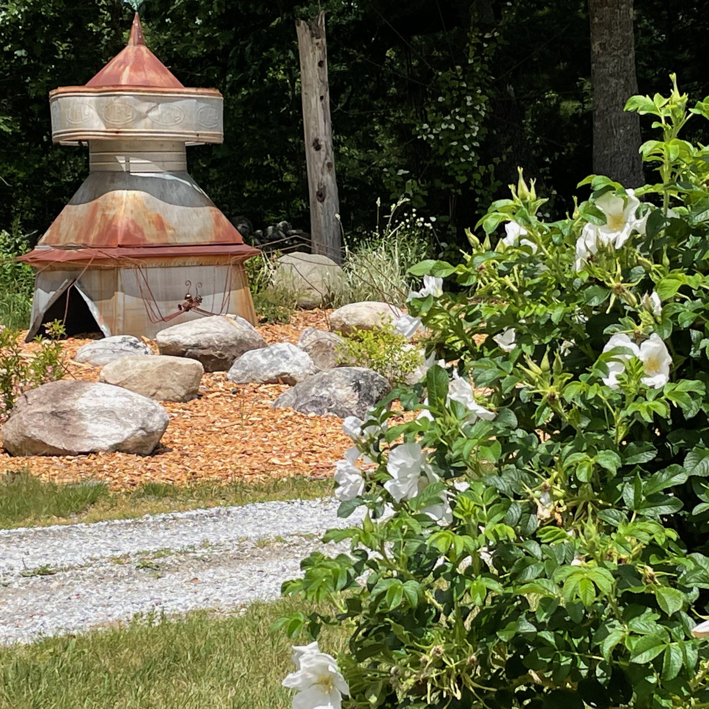 For a rustic and cozy, yet glamorous “glamping experience,” consider Penny’s Perch, a comfortable yurt tucked away in a peaceful and private wooded setting. Furnished with a double bed, table, chairs, and dresser an outdoor gas grill, and firepit with unlimited free firewood. Available May-October. [link to more detailed info/photos on another page]