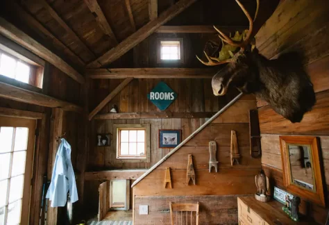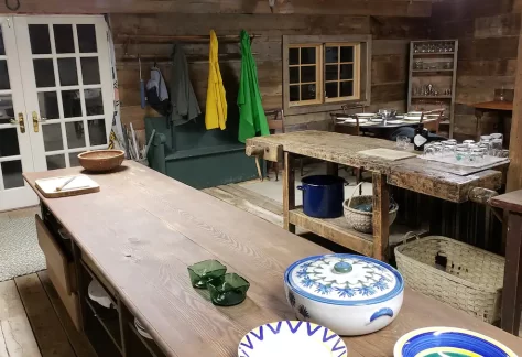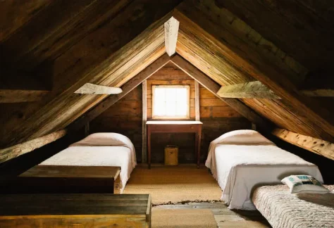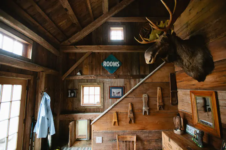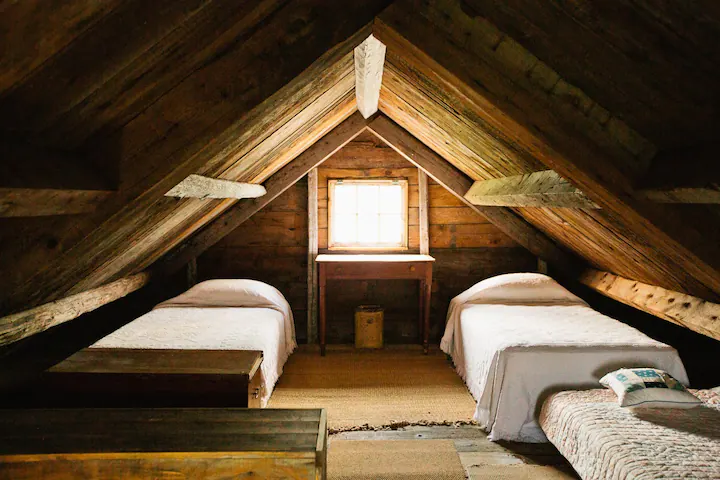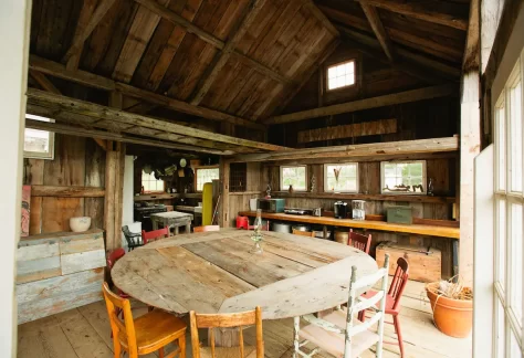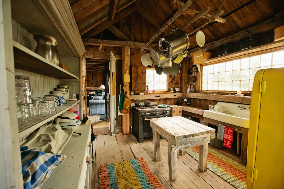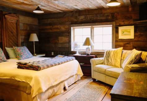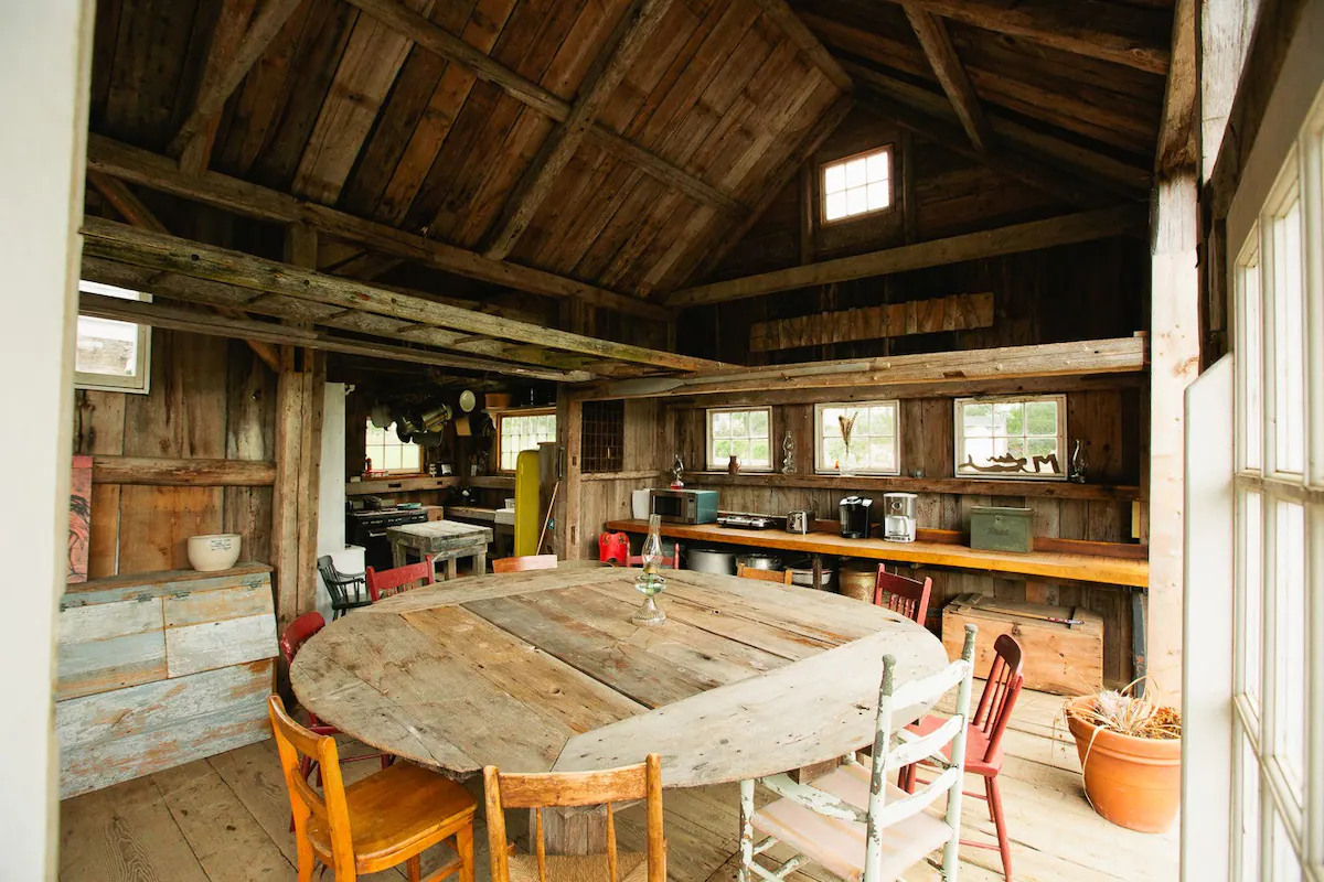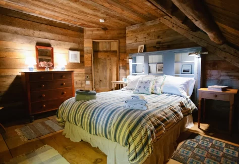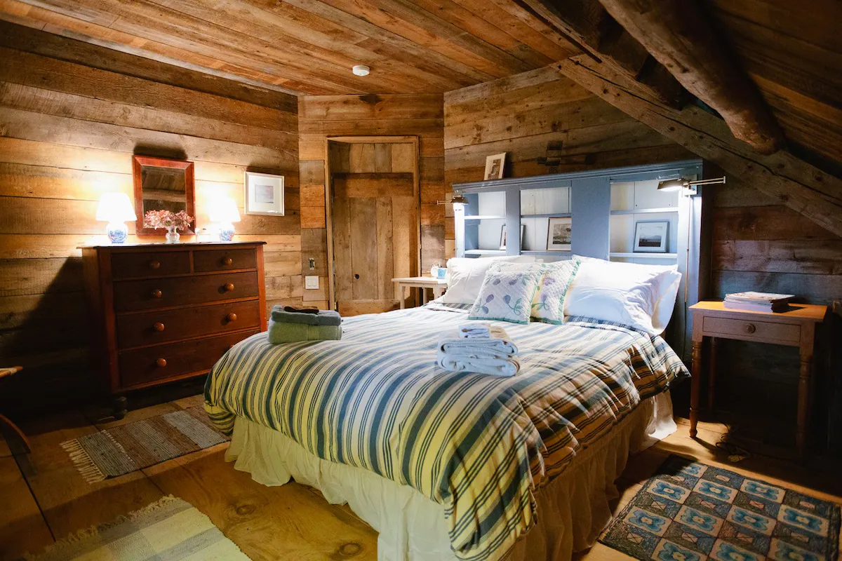 Thistledown Farm’s Sheep Shed Cottage was created by joining 2 handhewn post and beam barns. It is furnished with unique antiques and old barn finds. The sleeping loft is accessible only by a ship’s ladder. Adults and kids alike LOVE it. It is a great place to kick back! The accommodations are rustic-more like “glamping” than a dolled-up seaside cottage. This is a seasonal space, so bookings are only available mid-May to mid-October.