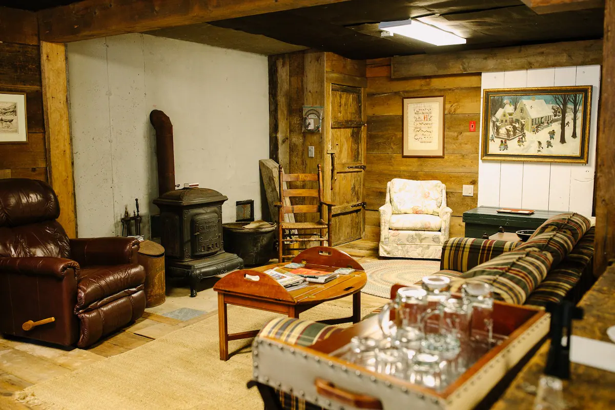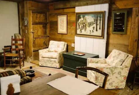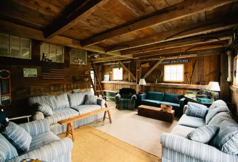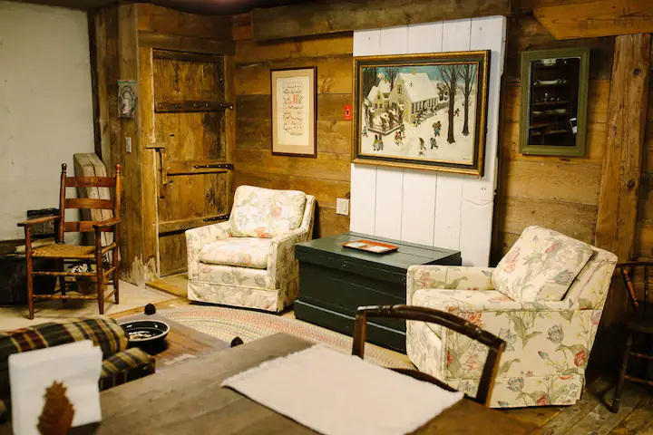 Pennysworth is a magnificently restored 1850s post and beam barn with a cathedral ceiling, large granite fireplace, both antique and authentic barn furnishings, and wide-planked walls and floors.